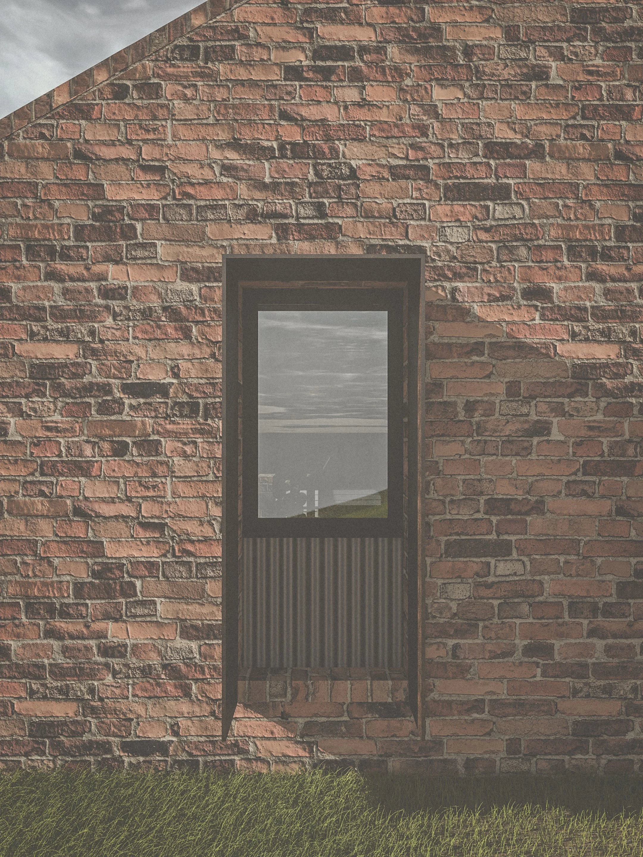 The simple semi-rustic facade is inspired by the early mining workers cottages which were a part of the first industry in the area. The brick parapet “bookend” walls reflect the silhouette of an early workers cottage that typically featured a central entry door with two windows either side.