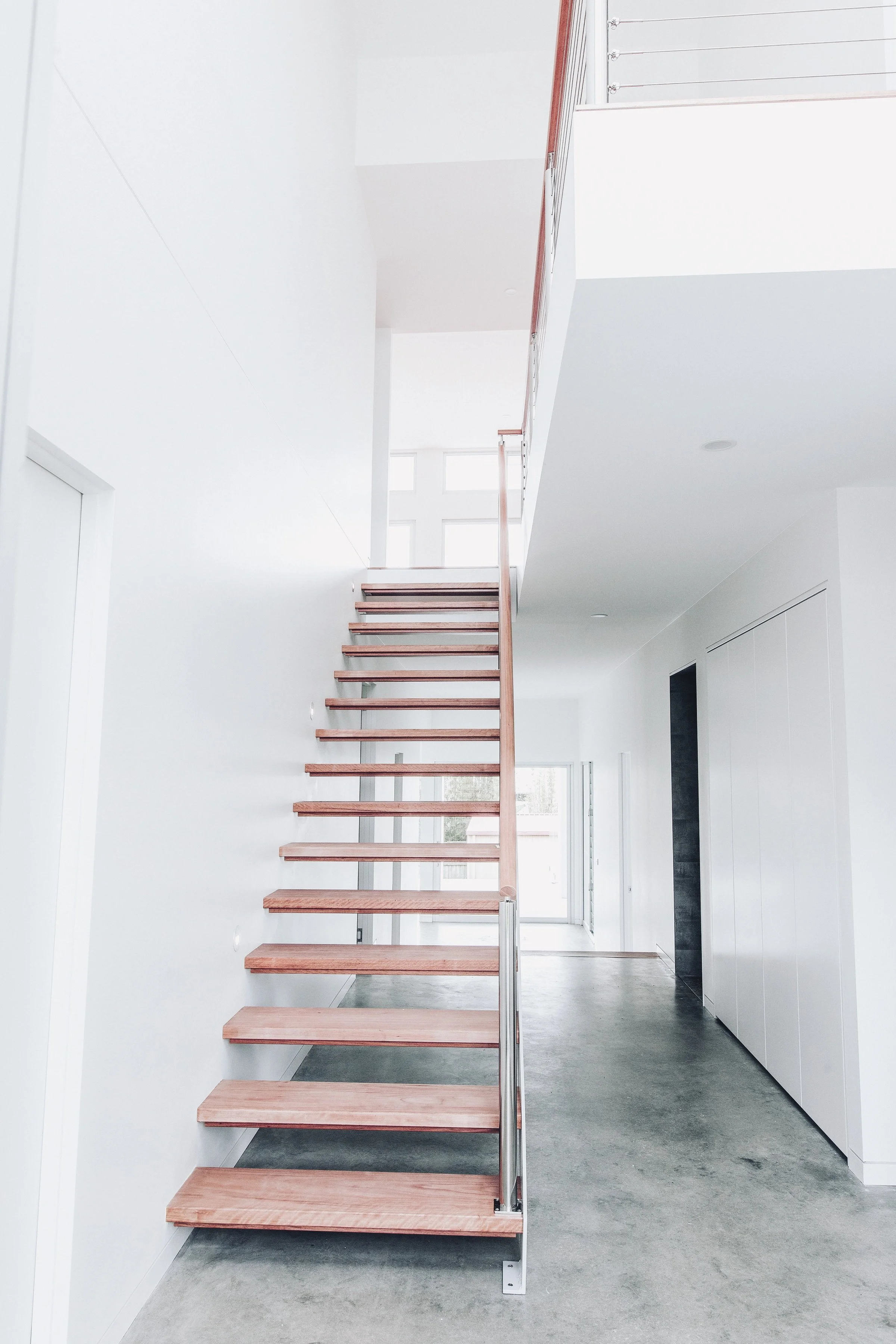 Somerville House was a knock down and rebuild for a young family. The home is designed for easy living connected by a central breezeway and an open riser stair.