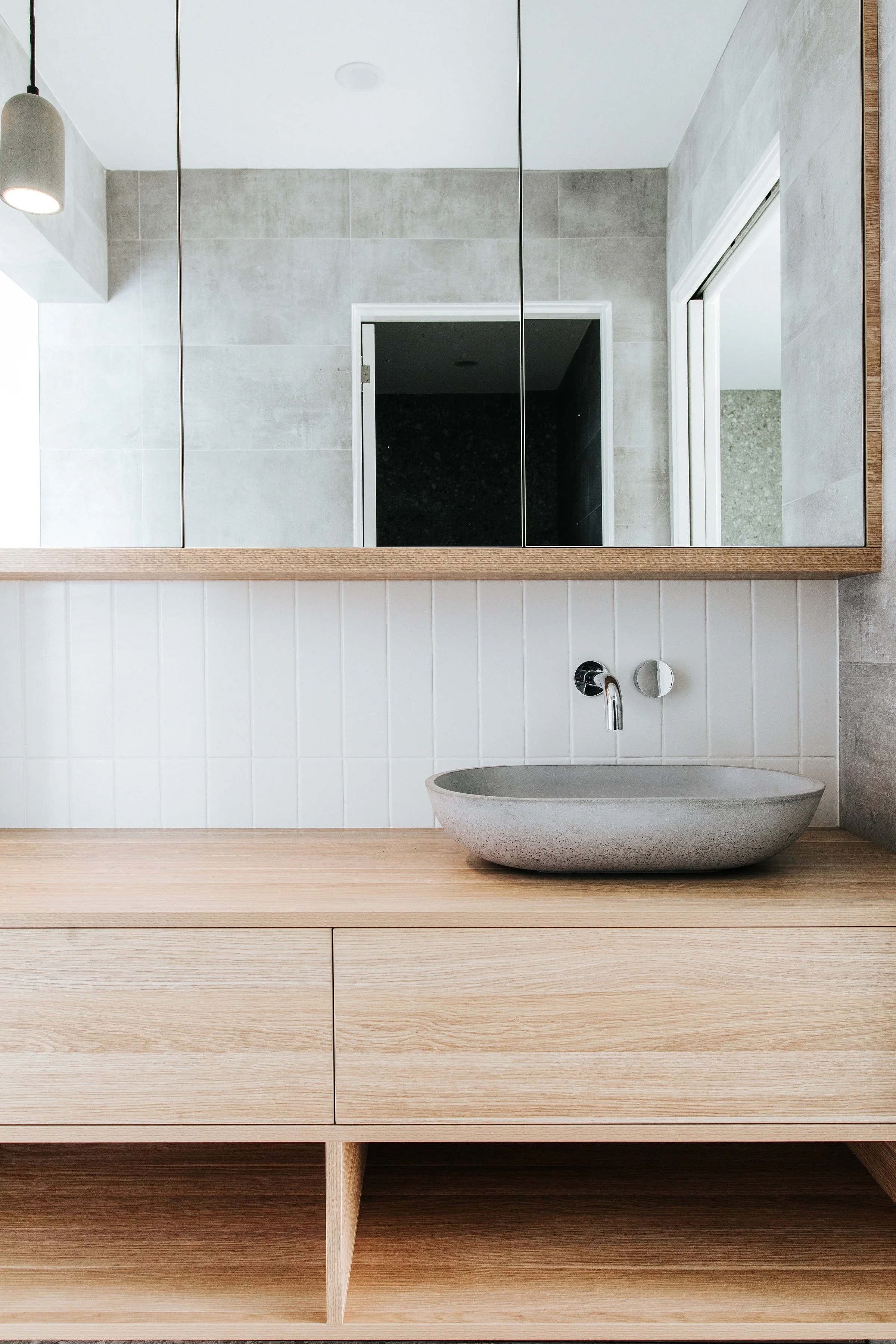 Interior finishes are a continuation of the exterior, selected by the client to be durable and stand up to the rigours of family life.