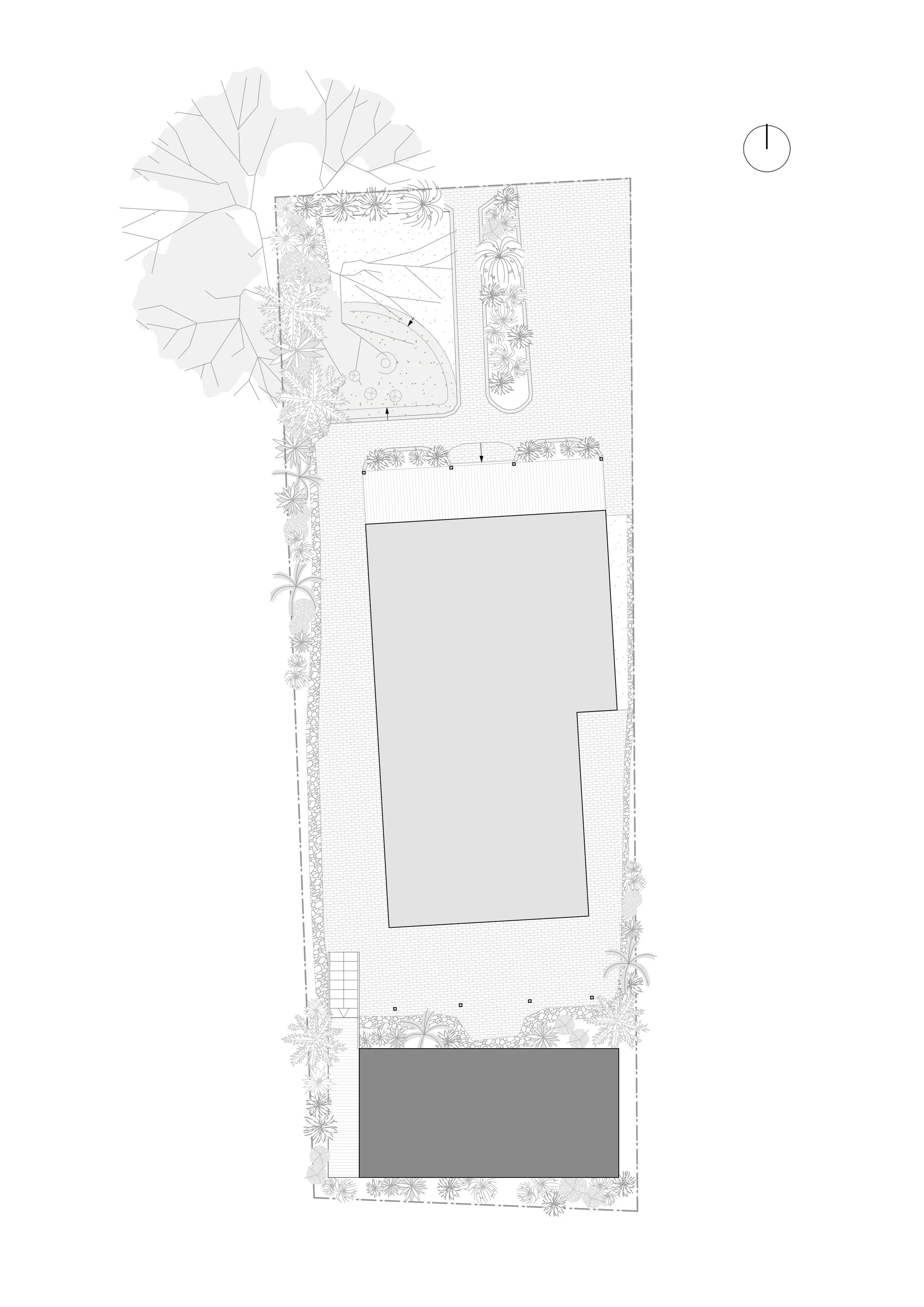 The site faces north with only one neighbour along the east as a common access way skirts our western and southern boundary to the battle axe lots located behind. The existing cottage is slightly cut into the site, across the rear is a tiny level area approximately 10.4m wide x 4.5m deep, that can be accessed separately to the existing cottage along the western boundary.