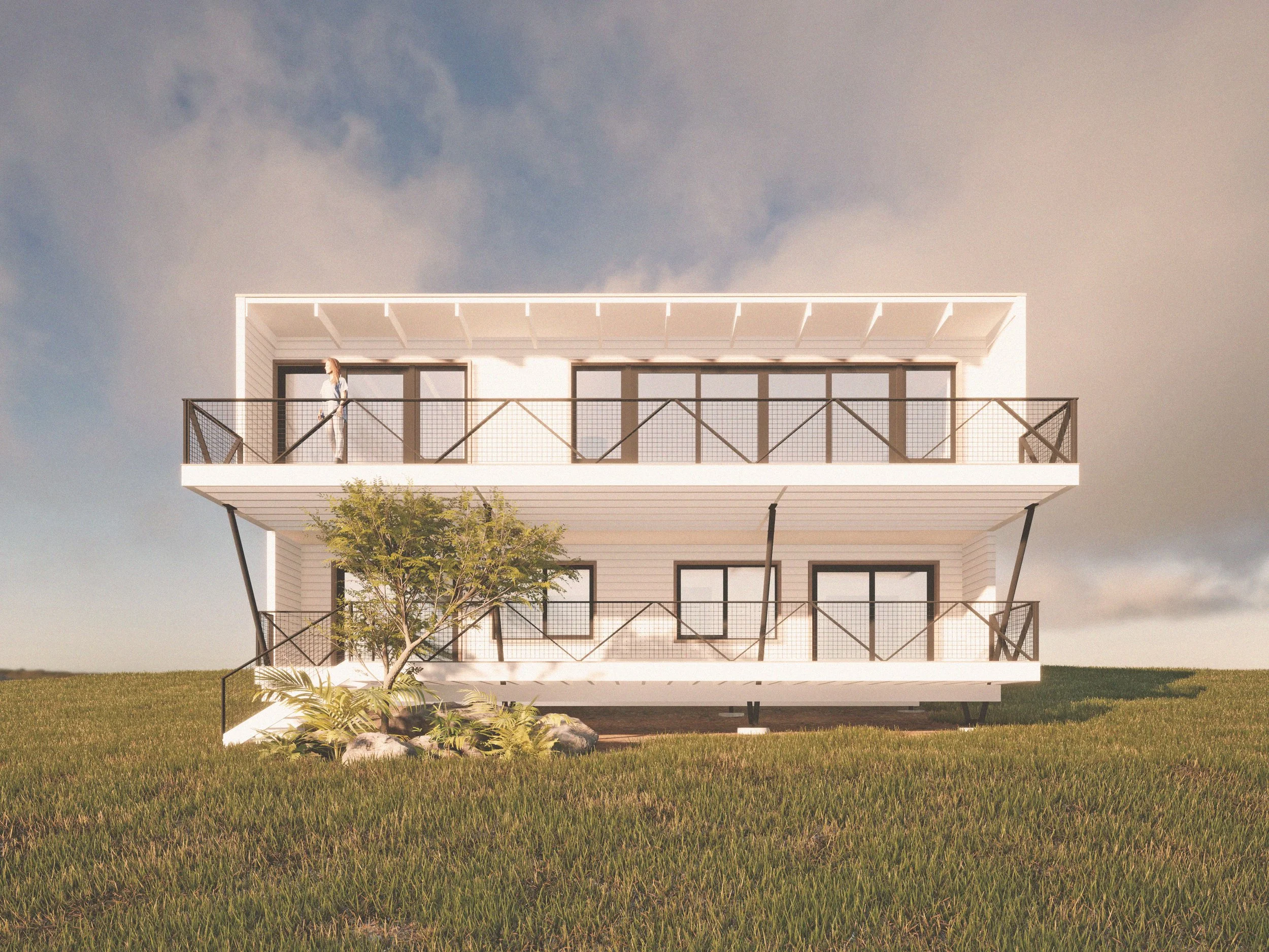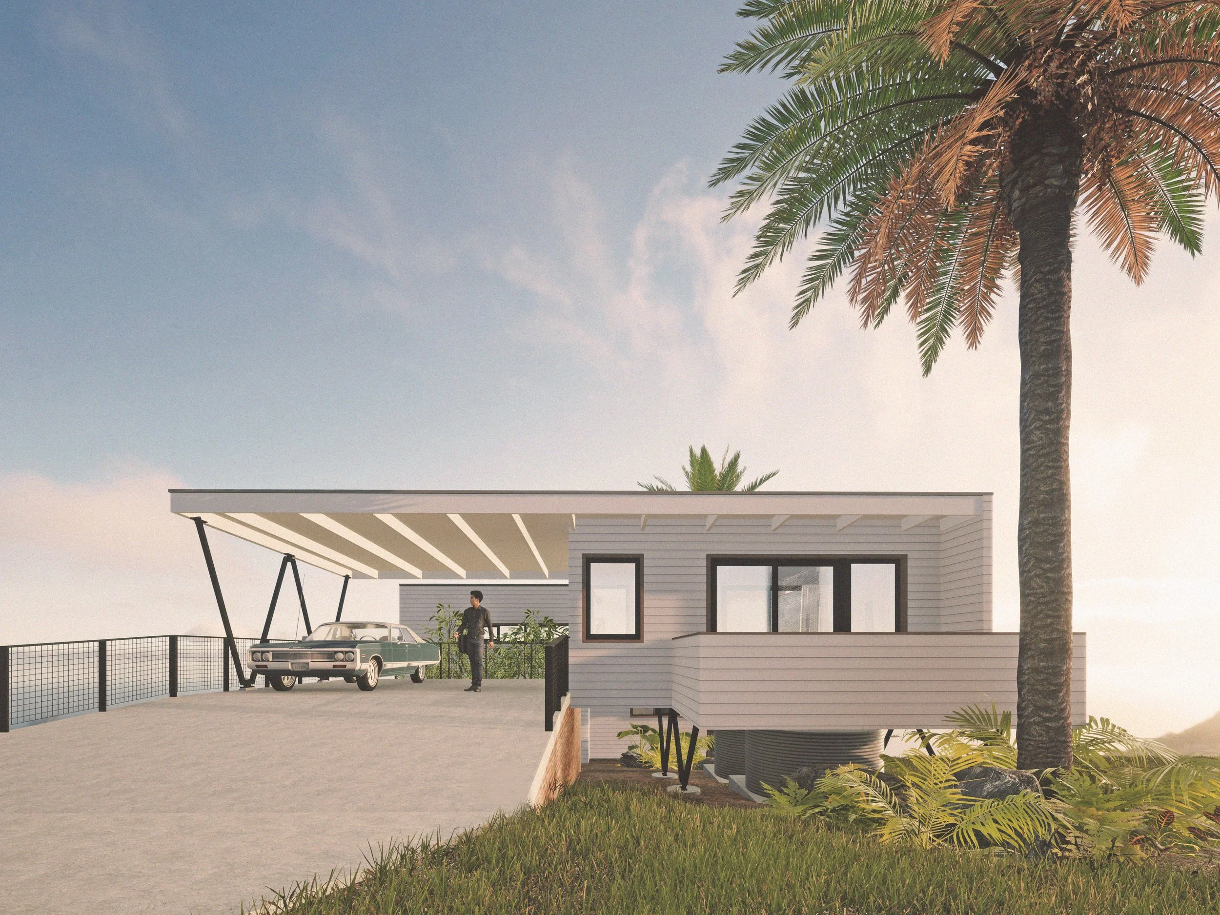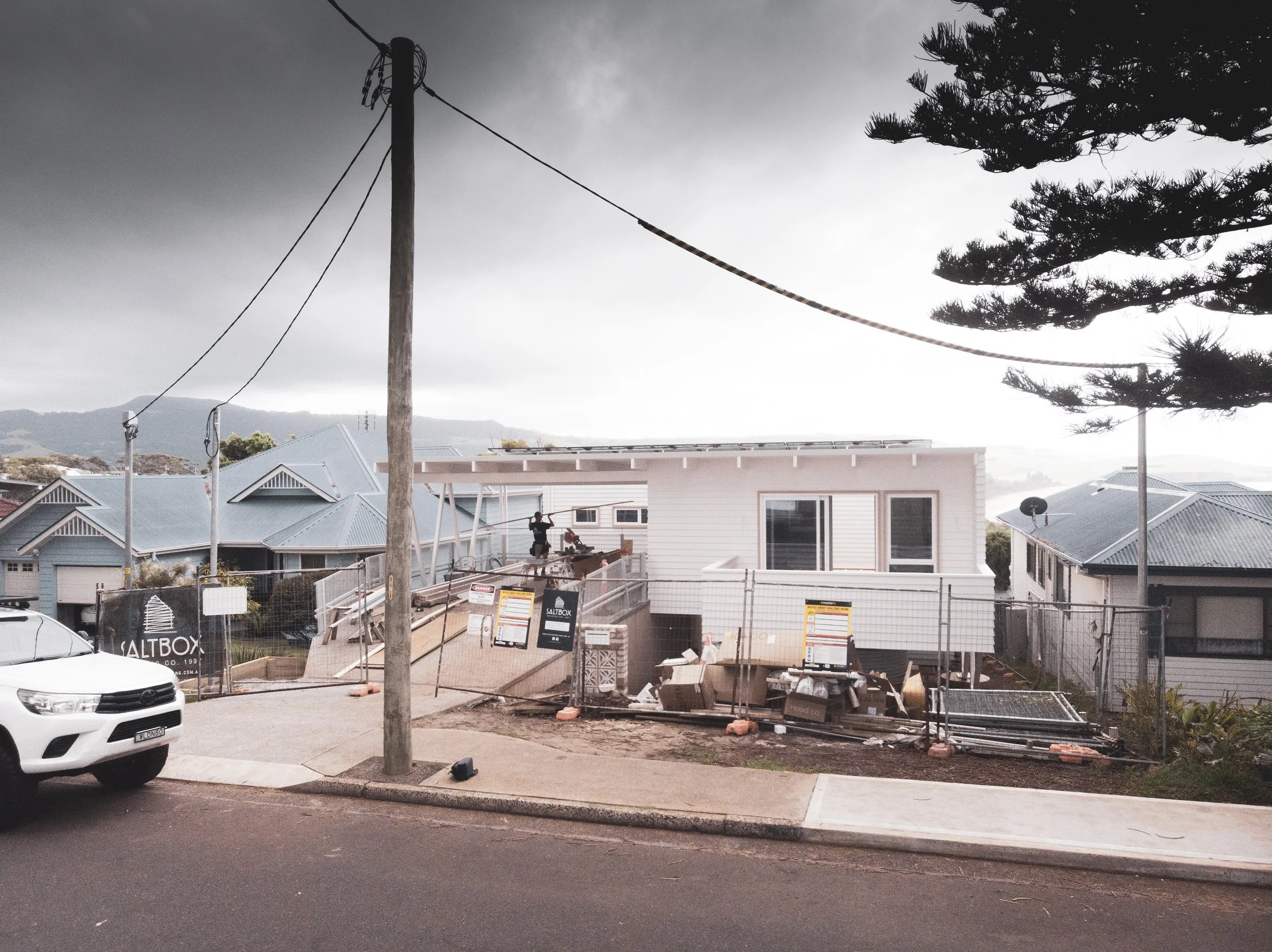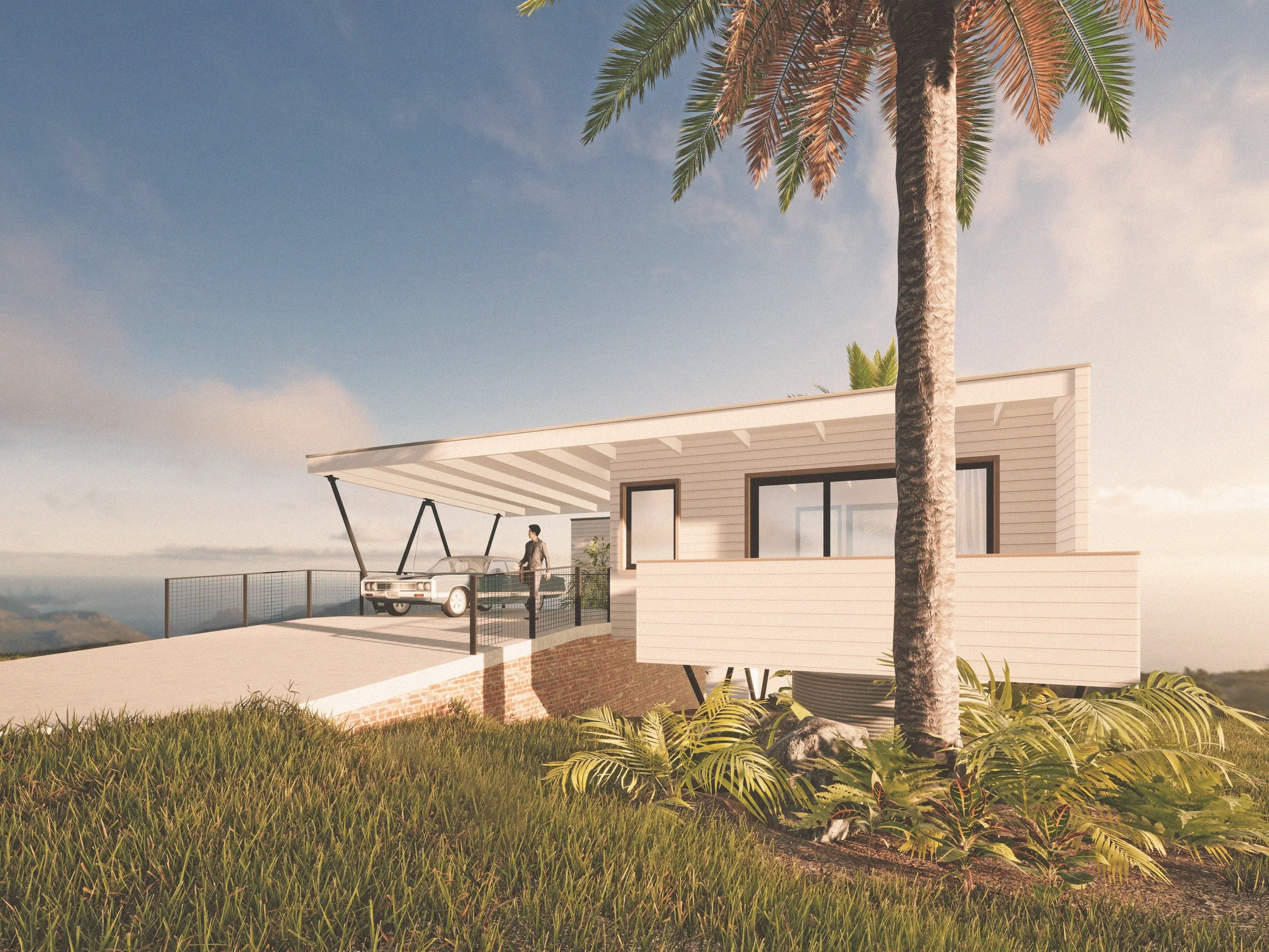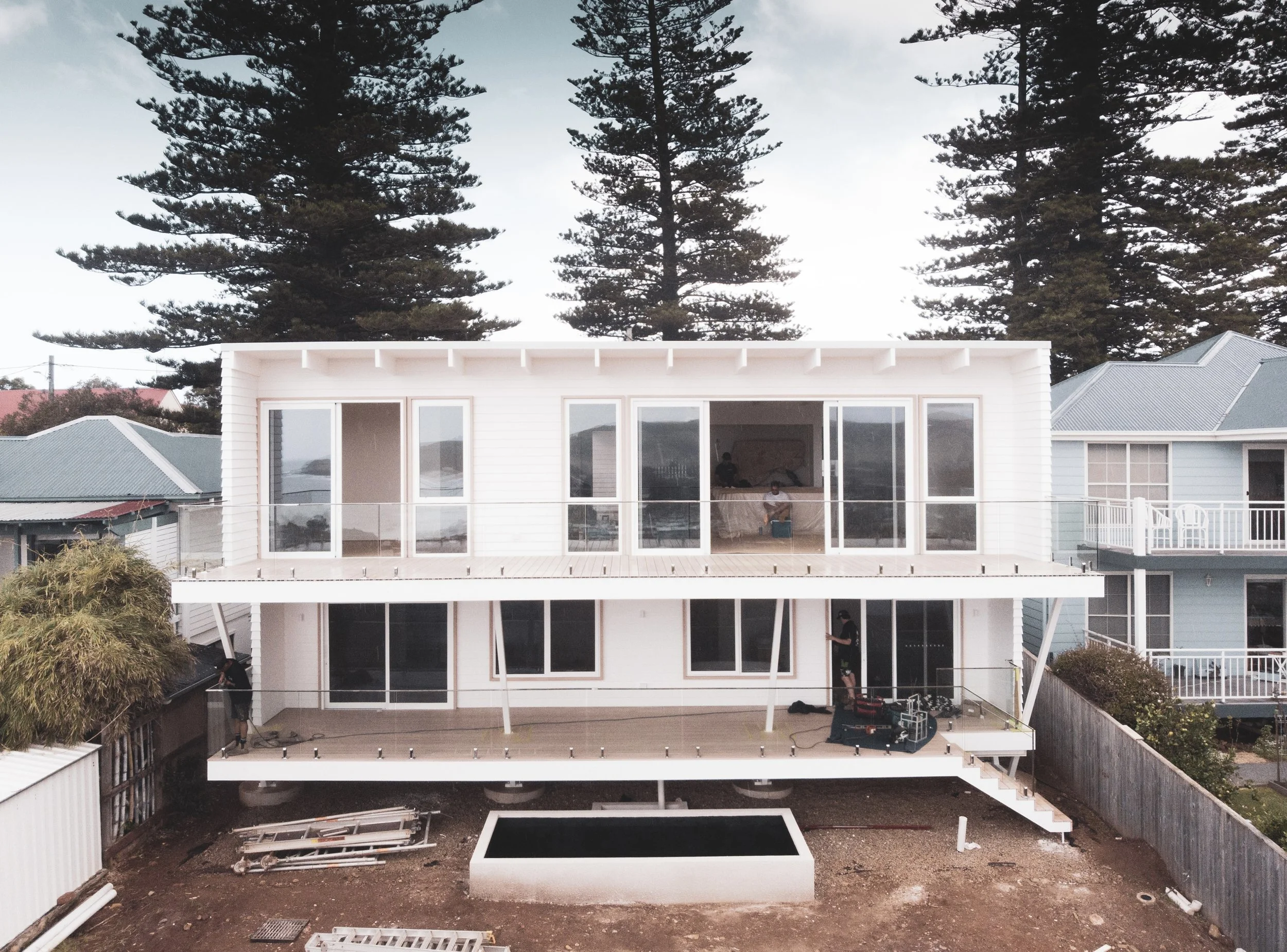 Quinn House sits elevated overlooking the quintessential beachside township of Werri Beach to the north. Drawing on inspiration from Australian mid century beach houses, the split pavilion layout is designed treading lightly on the site to create a unique floating entry above a garden.