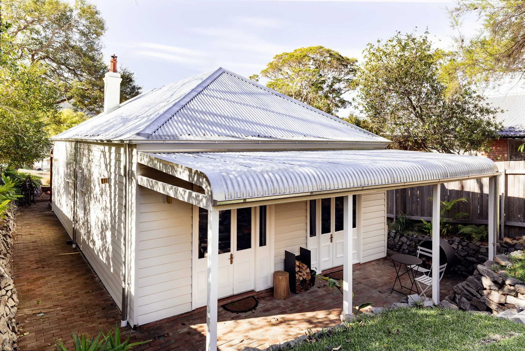 Coming to terms with the early history of the Illawarra Escarpment, we wanted to make a small gesture in the way we could in re-landscaping to continue the authentic restoration. What started as our “covid-lockdown” landscaping project, we removed the old picket fencing, lopped the overgrown trees and cottage garden to increase the visibility of the house. We educated ourselves on native species specific to the escarpment and adapted and re-planted existing landscape areas using a variety of dry grasses, ground covers, ferns and small trees.